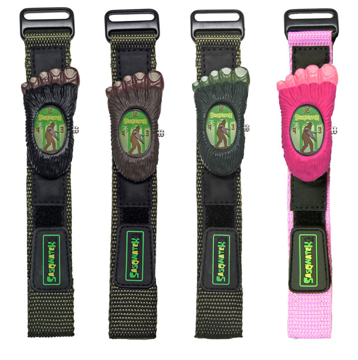 The Original Bigfoot wrist watch. Keep the legend of Bigfoot alive on your wrist. Vintage, unisex adjustable band. INCLUDES 2 changeable color cases to suit your mood. Also Includes a Sassy Sasqwatch (needs battery changed. battery and instructions included)